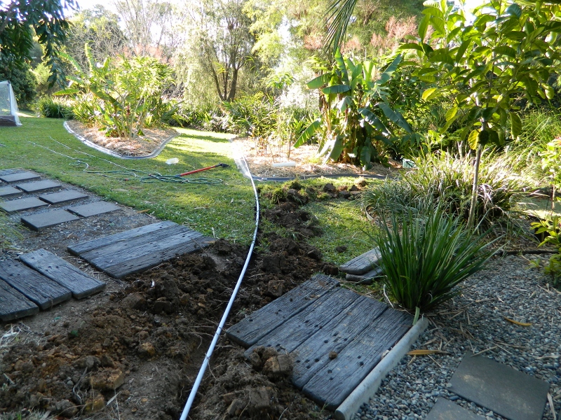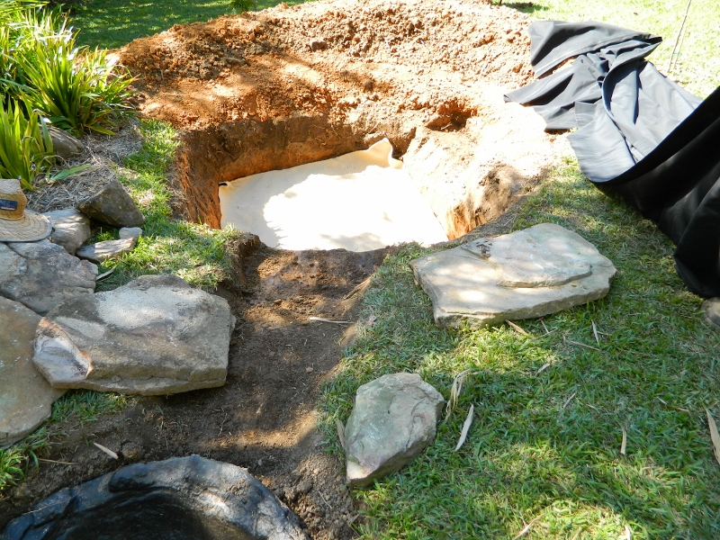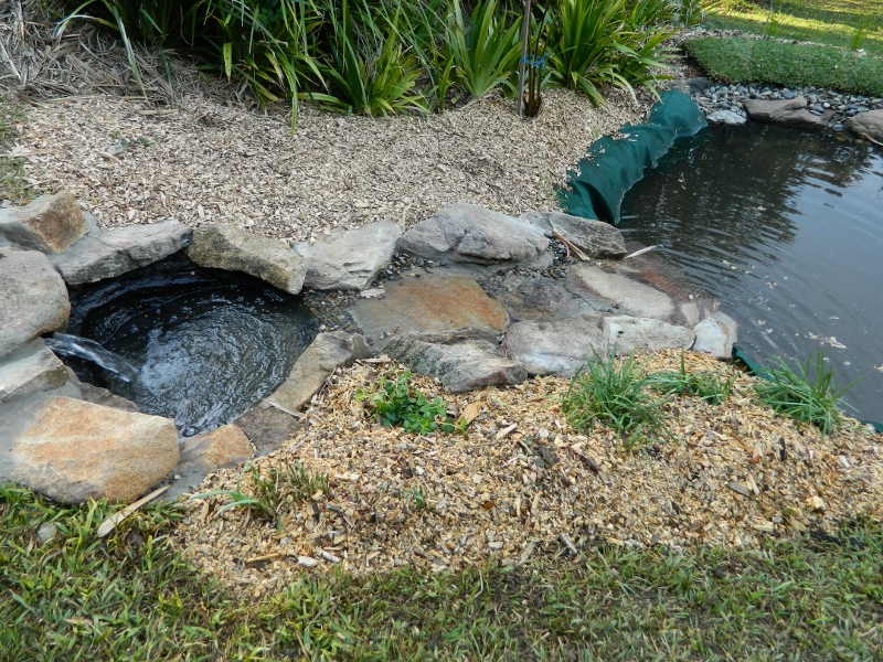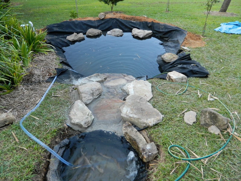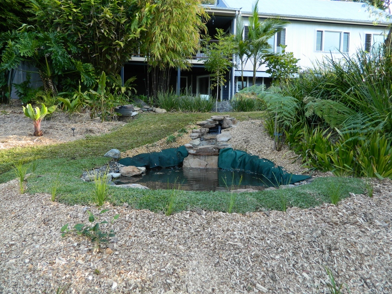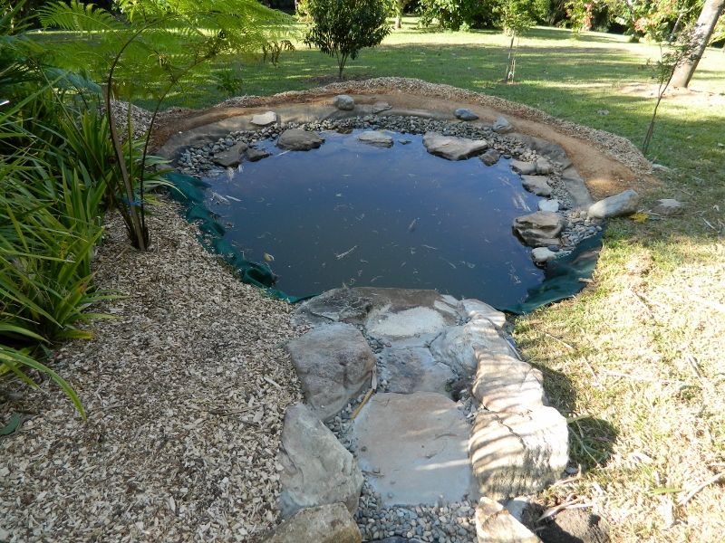 I won’t bore you with all the technical details, you can read them on the attached pdf if you are interested. All the heavy work and engineering was done by Rick who flew in from Singapore to do the job, and the planting and the pebble placement was done by me … standby for news of a frog invasion !!