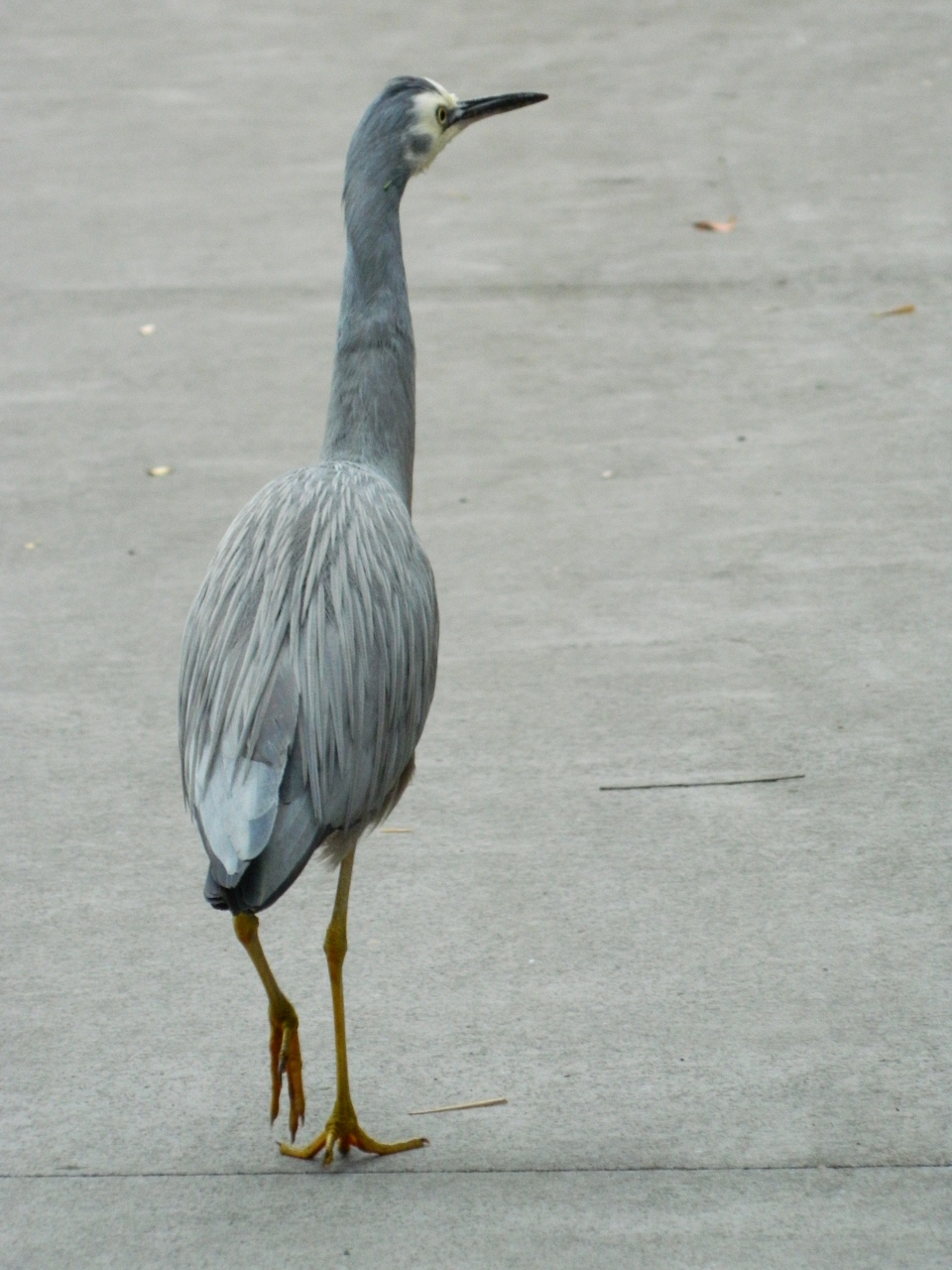 Yesterday I noticed this White-faced Heron strutting around the pond.  It had stopped in either for a drink, or to terrorise the few remaining goldfish by staring trance-like into the water.  It seemed relatively un-concerned with my presence, and allowed me to get fairly close before retreating with its characteristic slow-motion walk.