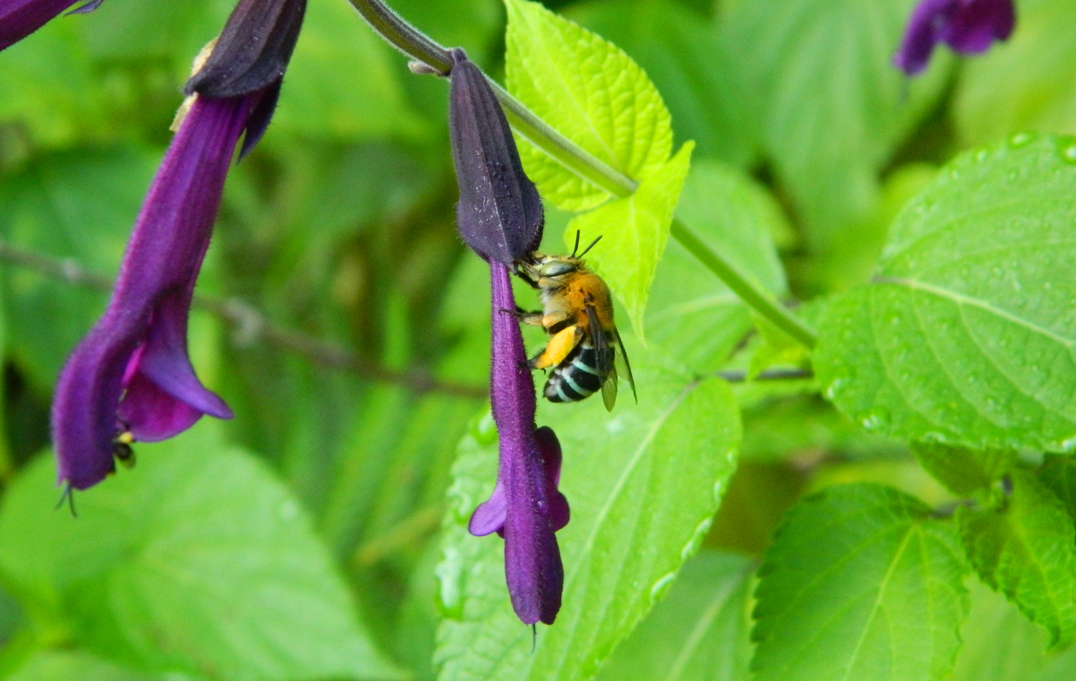And only recently, I realized that what I thought were large flies scooting around the garden, are actually native Blue Banded bees. They are an absolute B…… to photograph because they hover and dart like a manic helicopter.