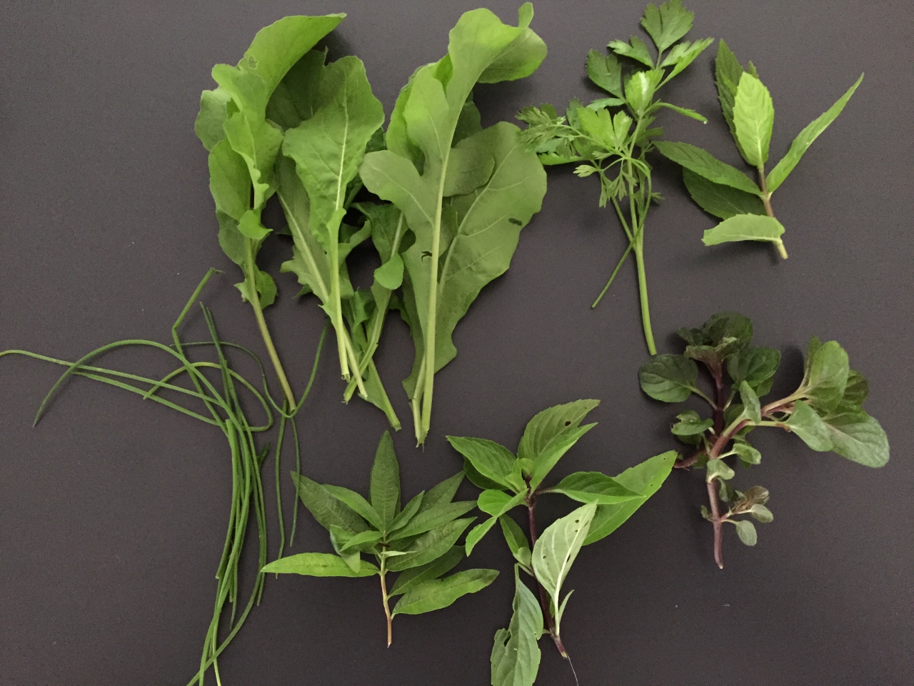 To boost the size of the salad, I added baby rocket, parsley, lime mint, berries & cream mint, common mint, chives and a few clover flowers that I picked whilst en-route to check the letterbox.