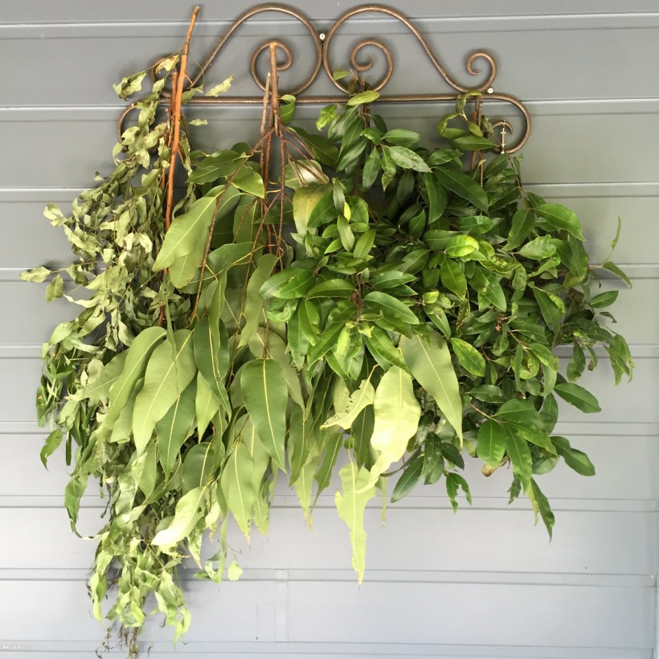 I’ll just have to wait for a storm to send a branch crashing to the ground. In the meantime I’ve been having fun with Lemon Myrtle leaves, and various unidentified eucalypts.