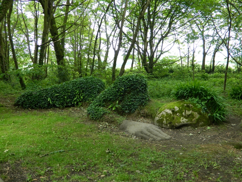 The Mud Maid lies sleeping peacefully in a grove of trees not far from the entrance to The Lost Gardens of Heligan in Cornwall. Made from clay, straw and cement, she has hair of wood-sedge and a body covered with moss and ivy. Together with the Giant’s Head she has become a symbol of the restoration of the gardens.