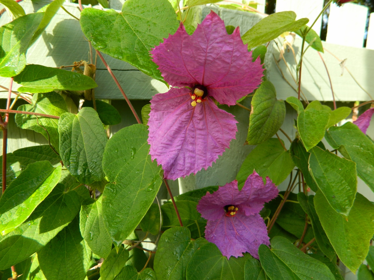 And there are some other sub-tropical plants blooming at the moment – the Cat’s Whiskers, Brazilian Cloak, Champagne Ginger and the ever crazy Costa Rican Butterfly vine. Not bad considering Winter officially starts in only six days!