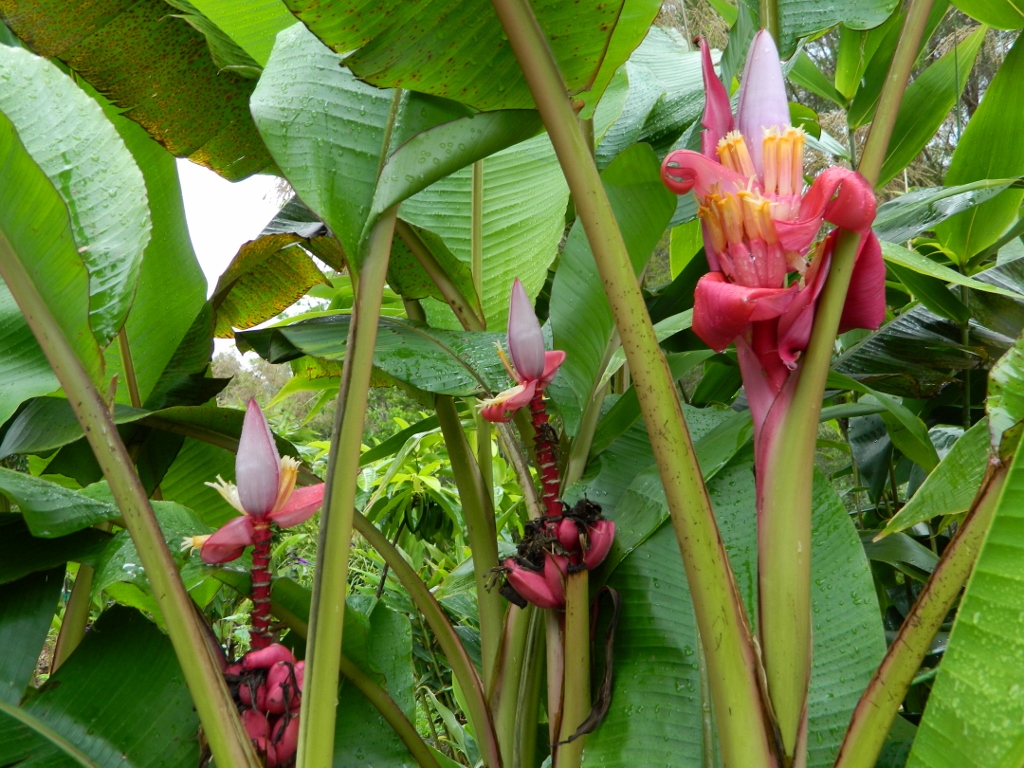 As always, the bananas can be relied upon to go absolutely bananas !! The pink Musa velutina have flowered their heads off, and provided snacks for the honeyeaters, and the not-so-dwarf Cavendish provided me with a huge bunch of small sweet bananas. The Abyssinian has finally settled in and is producing spectacular leaves. ( I have five Abyssinian seedlings ready to go in the ground, and I suspect that these will be next summer’s stars.)